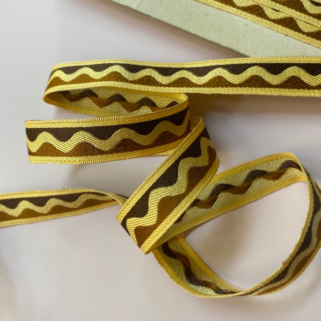 フランス製の19世紀のアンティークリボンです。リボンの光沢は、金属繊維に織り込んで作られております。ハシゴ柄・ラダーパターンはシンプルながら定番の美しさ。太さの違いで2種類をご案内です。