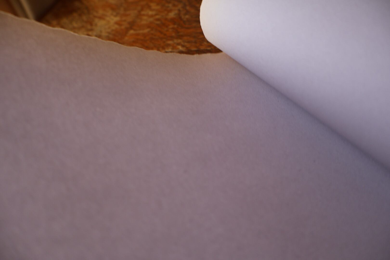 現地ディーラーによると便箋とのことですが、当店では絵を描く方や版画家の方などに、重宝頂いている印象です。金彩が美しい紋章が描かれた表紙も素敵で、味わいもありつつ上質感もあるペーパー、100枚組です。Féodal (pl)は、淡い紫色のペーパーになります。